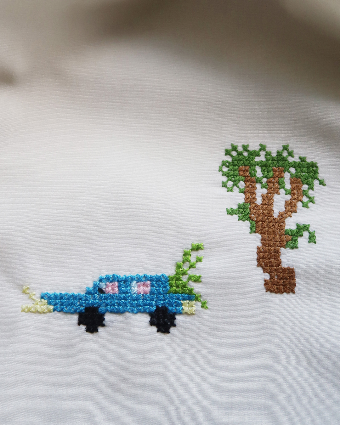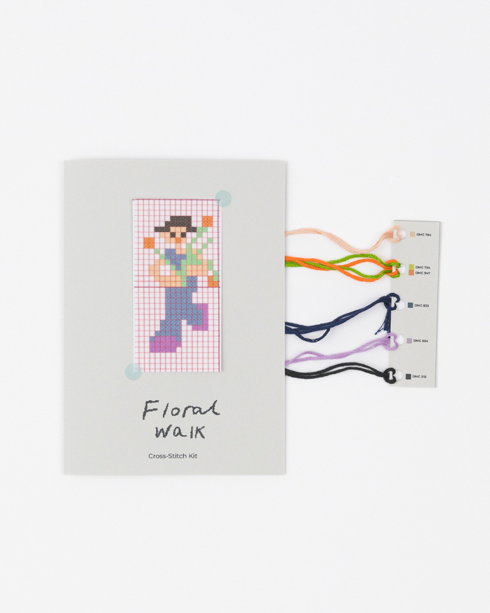 Pixel-Stitching-Kit ist ein Stick-Kit, mit dem Kreuzstich direkt auf der eigenen Kleidung möglich wird. Yuntreee.Kiosk vermittelt die sinnliche und meditative Kraft des Stickens und lädt dazu ein, diese Erfahrung selbst zu machen. Statt schnelllebiger Mode steht die Idee im Mittelpunkt, Kleidung durch liebevolle Stickerei zu etwas Persönlichem und Nachhaltigem zu machen. Das Set enthält ein wasserlösliches Muster, das auf Papier gedruckt ist, vorgeschnittene Fäden, die dem Farbcode entsprechen, und eine Anleitung.