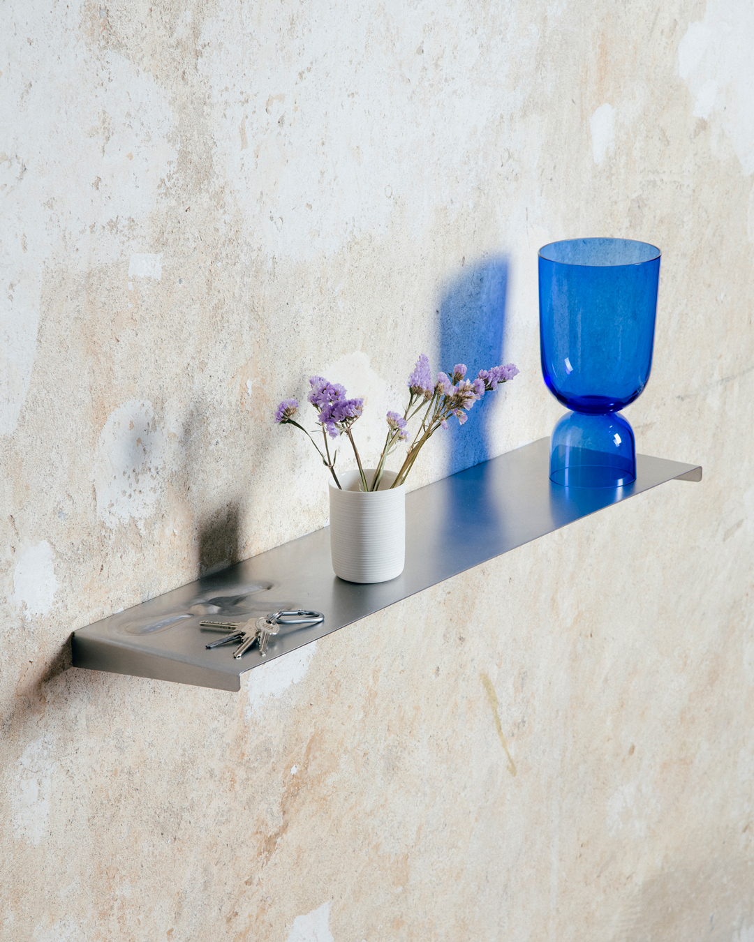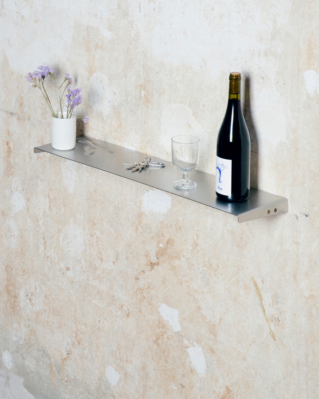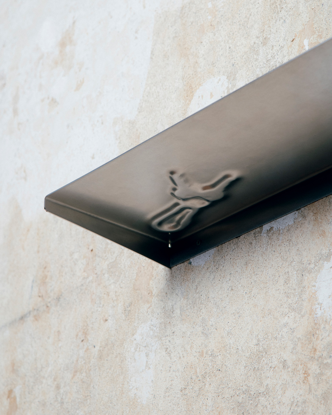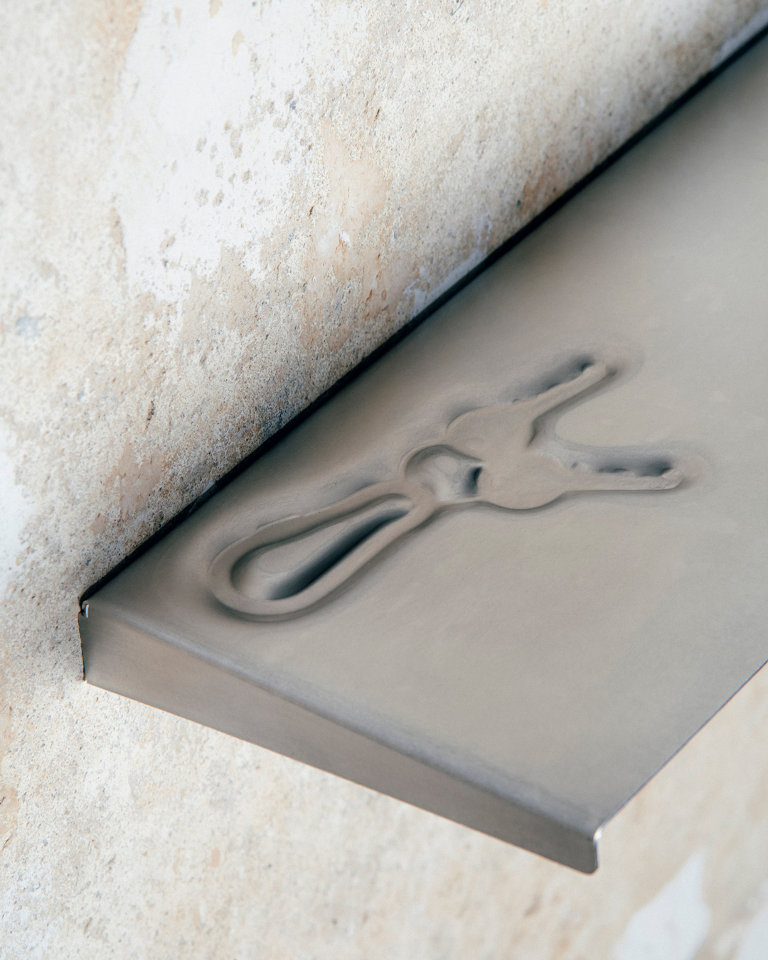 Bei dem Entwurf Renee handelt es sich um ein wandmontiertes Regalbrett, das durch eine reduzierte, funktionale Formensprache geprägt ist. Diese wird durch eine weiche Prägung in Form eines Schlüssels formal kontrastiert. Auf diese Weise wird die sonst starre Materialität des Edelstahls aufgebrochen und mit einer symbolischen Bedeutungsebene angereichert. Die Prägung verweist auf eine potenzielle Nutzung als Schlüsselablage, lässt jedoch gleichzeitig Raum für alternative Verwendungsmöglichkeiten. Die Wandbefestigung erfolgt durch eine einfache Montage mit drei Schrauben, wodurch eine stabile und alltagstaugliche Nutzung ermöglicht wird. Aufgrund der Verwendung von Edelstahl zeichnet sich das Regal durch hohe Langlebigkeit, Pflegeleichtigkeit sowie vollständige Recycelbarkeit aus. Renee fügt sich durch seine zurückhaltende Gestaltung in unterschiedlichste Wohnumgebungen ein, während das eingearbeitete Detail ein subtiles Moment der Irritation und Aufmerksamkeit erzeugt.